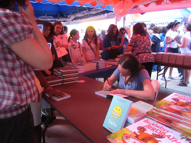 - We talked about school visits and book events and the crowds, here are some photos from Raina’s visit to Dade Country public schools and the Miami International Book Fair: